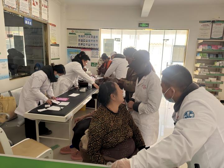 “活动当天清晨,中医馆大厅已排起长队,不少群众带着既往病历、检查报告早早等候。义诊现场,专家团队不仅提供一对一问诊、体格检查、病情诊断等服务,还免费提供血尿酸快速筛查、血糖、血压检测、关节压痛评估等项目,针对符合适应症的患者,专家团队免费开展了原价1576元/部位的“经筋刀+臭氧”特色治疗和原价32元/部位的“中药贴敷”治疗。县民族医院安排工作人员全程陪同就诊群众,协助完成挂号、检查、取药等流程,为语言沟通不畅的少数民族群众提供现场翻译服务,让暖心服务贯穿诊疗全过程。