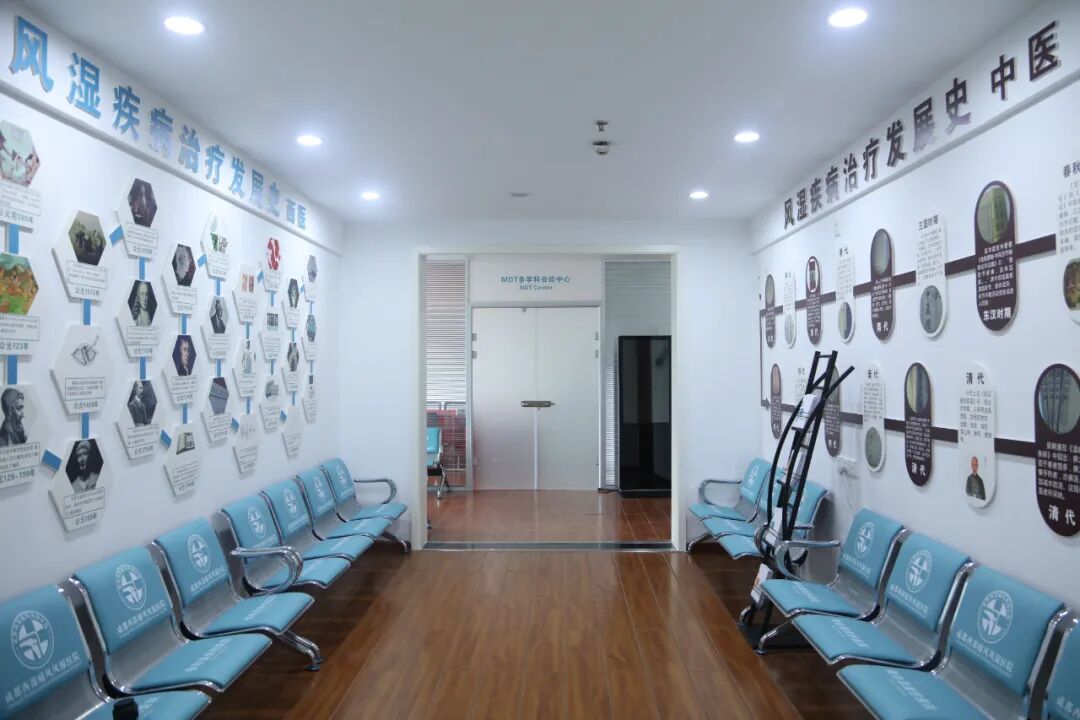 在成都西部痛风风湿医院二楼风湿MDT多学科会诊中心,北京专家与成都西部痛风风湿医院门诊医生、住院部医生通过现场会诊,共同为疑难风湿免疫性疾病患者制定个性化慢病管理方案、手术治疗方案、中医标本兼治方案。