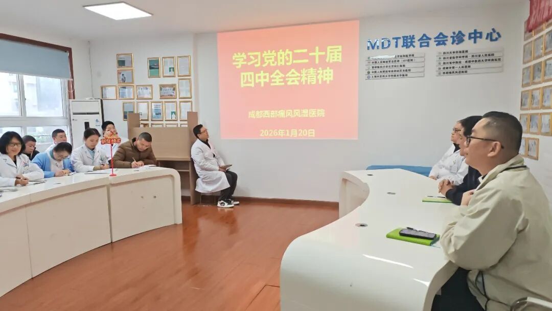 ▲成都西部痛风风湿医院党支部和中层骨干学习党的二十届四中全会精神