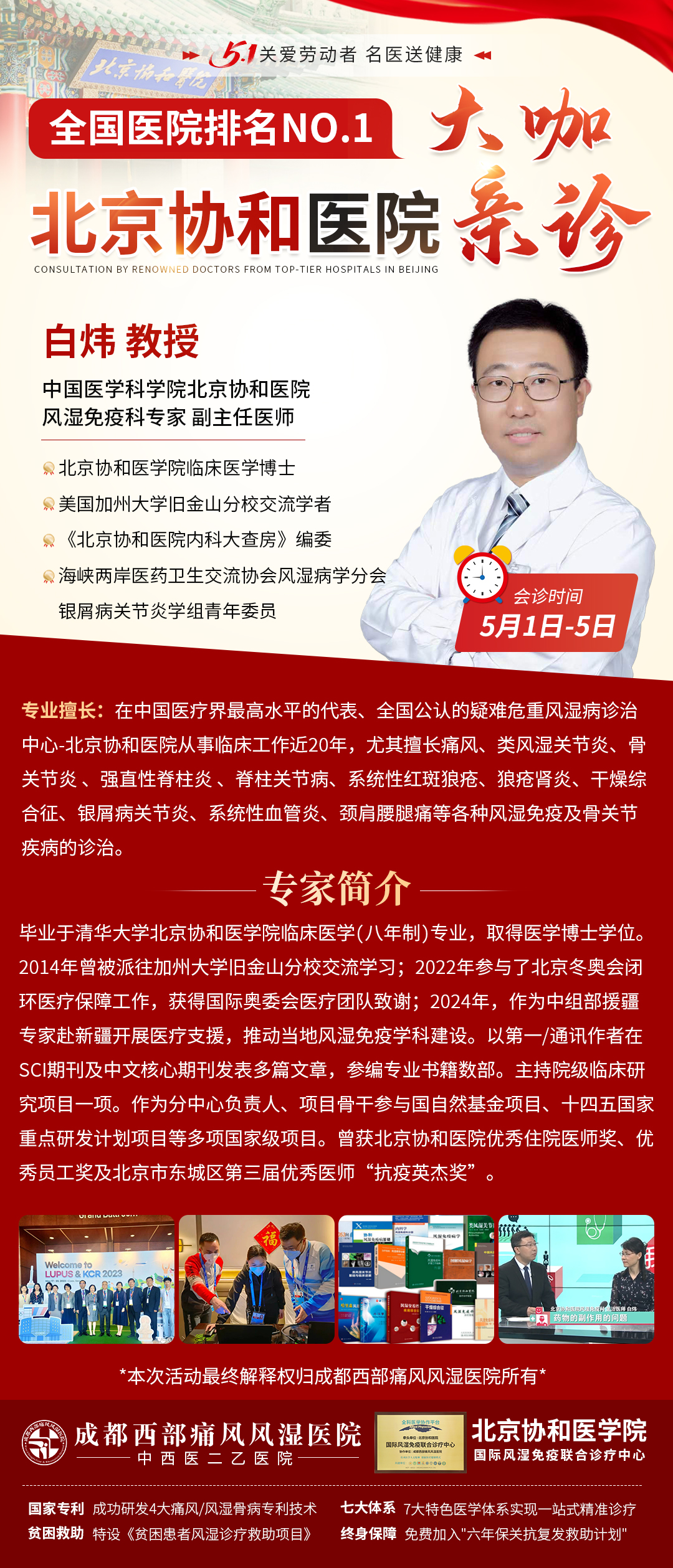 五一不放假 | 北京协和白炜教授领衔,痛风风湿患者速约公益会诊